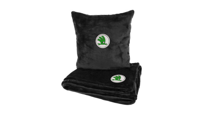 Подушка та плед для авто з махри від EVAtech М з вишивкою Skoda.