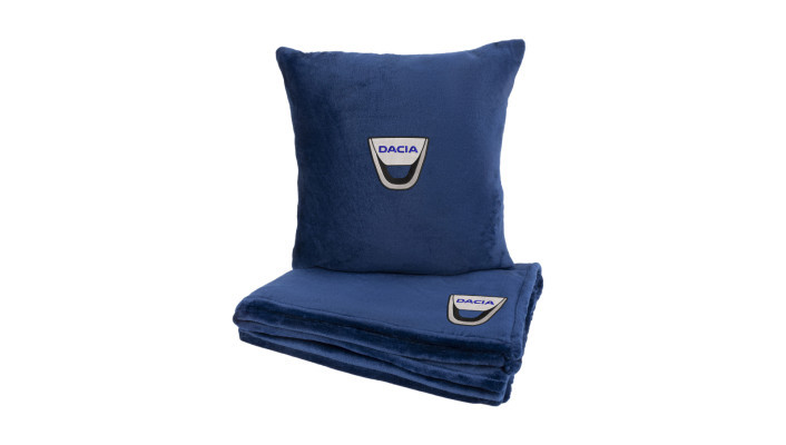 Подушка та плед для авто з махри від EVAtech S з вишивкою Dacia.